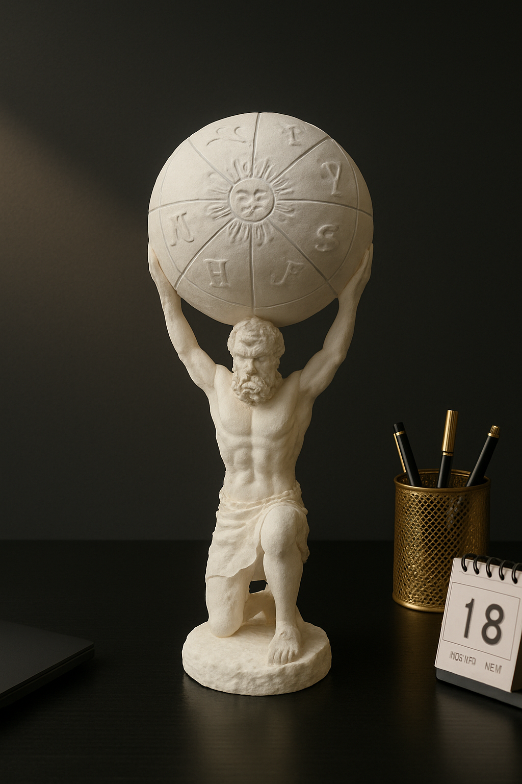 Ev ve ofis dekorasyonunda sanatsal bir obje olarak kullanılabilen Atlas figürü, çalışma alanlarına ilham verici bir atmosfer katar. Kitaplık raflarında, masa üstlerinde veya koleksiyon köşelerinde sergilendiğinde güçlü bir görsel etki yaratır. Aynı zamanda mitoloji meraklıları ve koleksiyoncular için eşsiz bir parçadır.