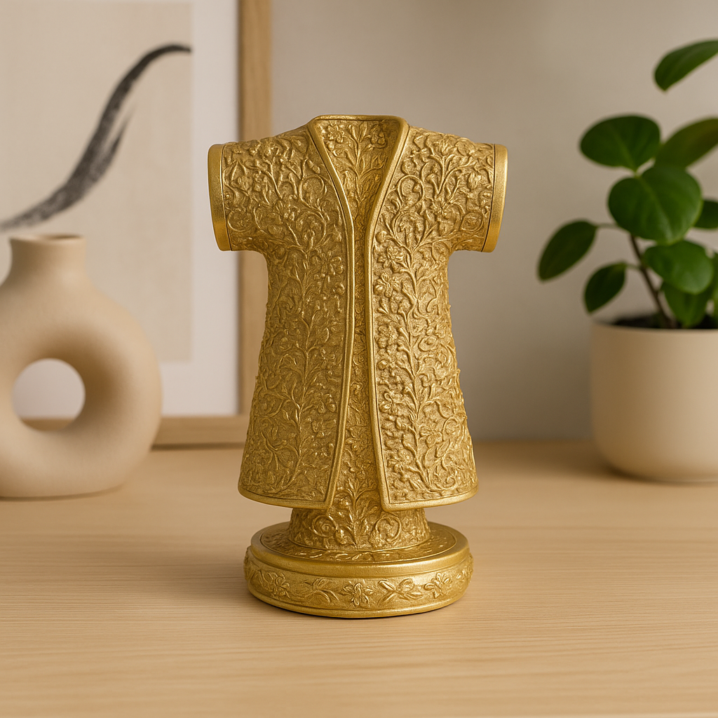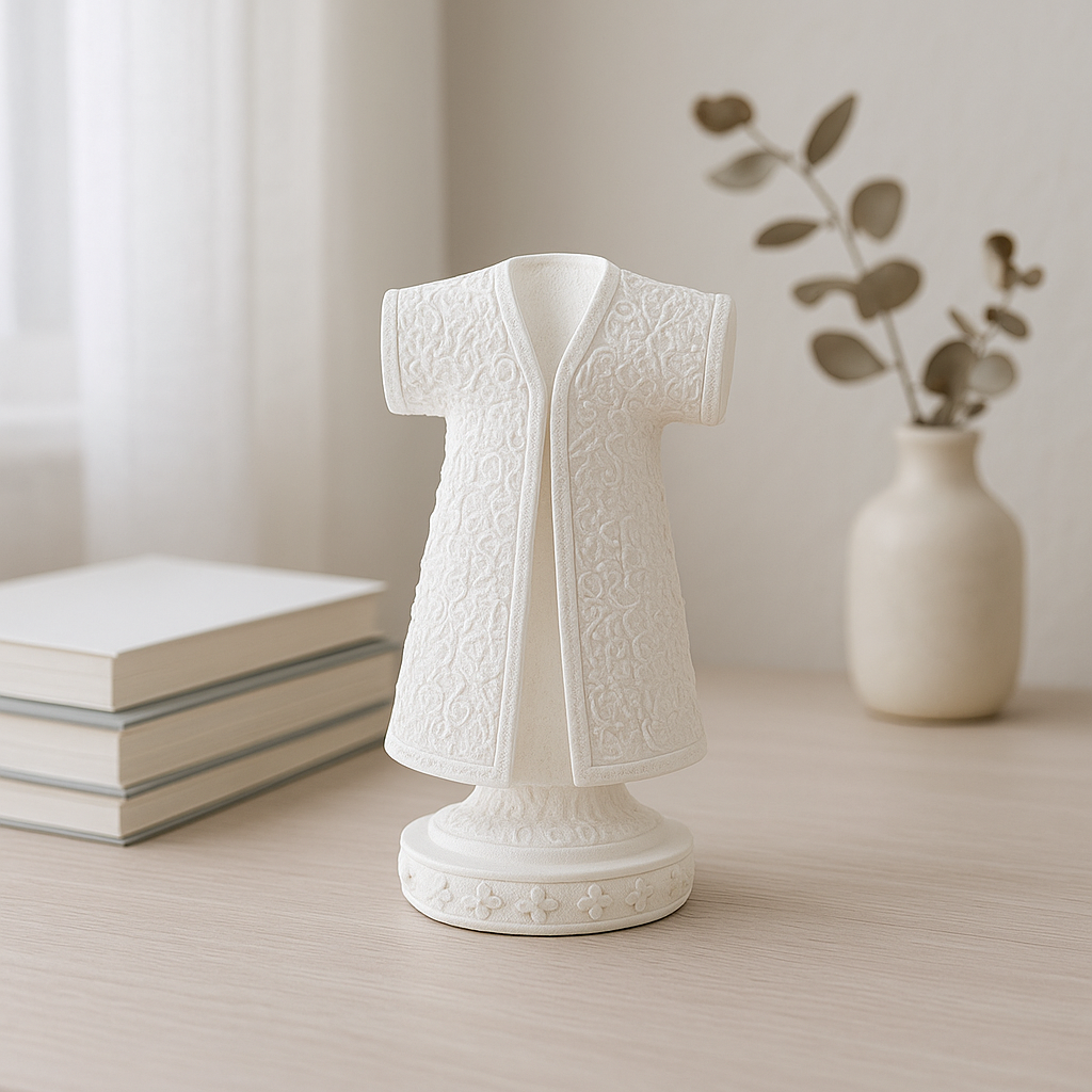 Osmanlı kültürünün zarif sembollerinden biri olan kaftan, bu özel tasarımda dekoratif obje formuyla yeniden hayat buluyor. İnce detaylarla işlenmiş motifleri ve estetik formu sayesinde yalnızca bir süs eşyası değil, aynı zamanda kültürel mirası yansıtan sanatsal koleksiyon ürünü niteliği taşır.