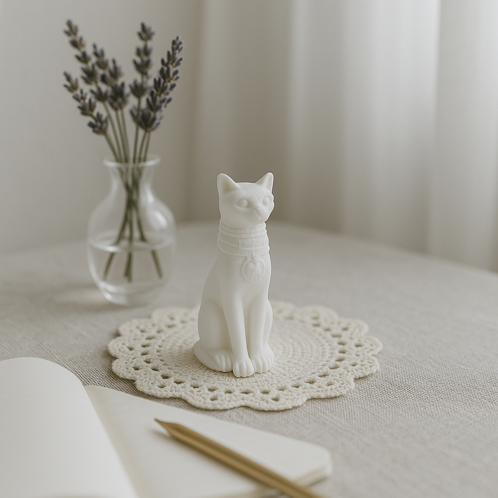 Zarafetin, özgürlüğün ve gizemin simgesi olan kedi, bu özel tasarımda estetik bir dekoratif obje olarak hayat buluyor. İnce detaylarla hazırlanmış figür, bulunduğu ortama hem sevimli hem de asil bir dokunuş katar. Minimalist ve modern formuyla yalnızca bir süs eşyası değil, aynı zamanda sanatsal koleksiyon ürünü niteliği taşır.
