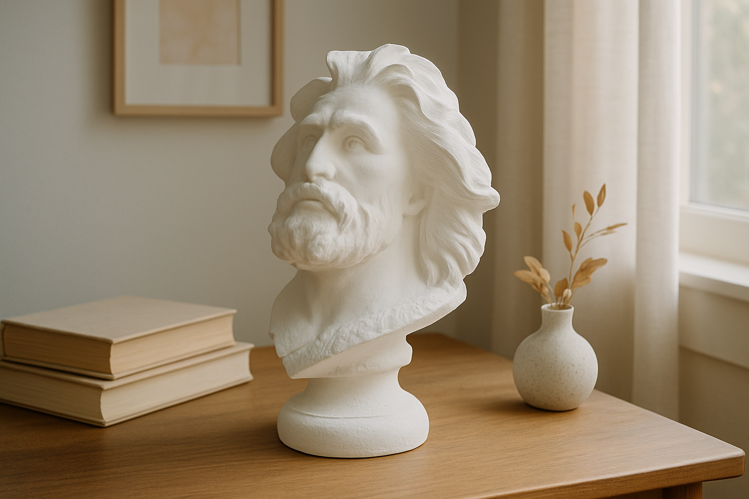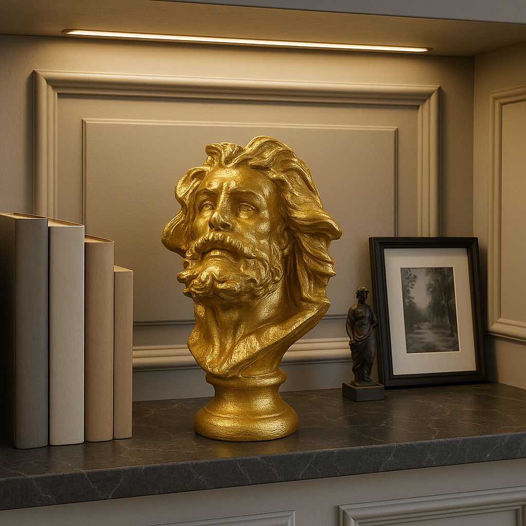 Ev, ofis veya kütüphane gibi alanlarda sergilendiğinde şık dekoratif obje olarak dikkat çeken bu büst; klasik sanatın ihtişamını modern dekorasyon anlayışıyla buluşturmaktadır. Estetik tasarımı sayesinde hem dekoratif amaçla hem de koleksiyon değeri taşıyan özel bir eser olarak tercih edilebilir.