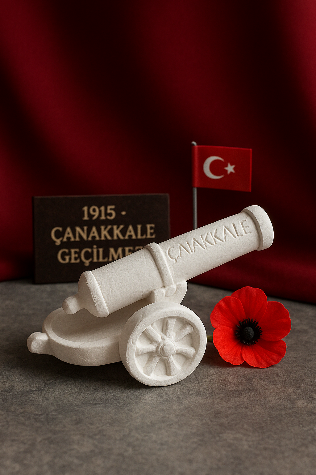 Çanakkale Savaşı temalı hediyelik eşyalar arasında öne çıkan bu özel tasarım, ziyaretçilere, tarih ve kültür meraklılarına ya da sevdiklerine anlamlı bir armağan sunmak isteyenlere hitap eder. Hatıra koleksiyonları, anma günleri, özel etkinlikler ve millî bayramlar için değerli bir dekoratif objedir.