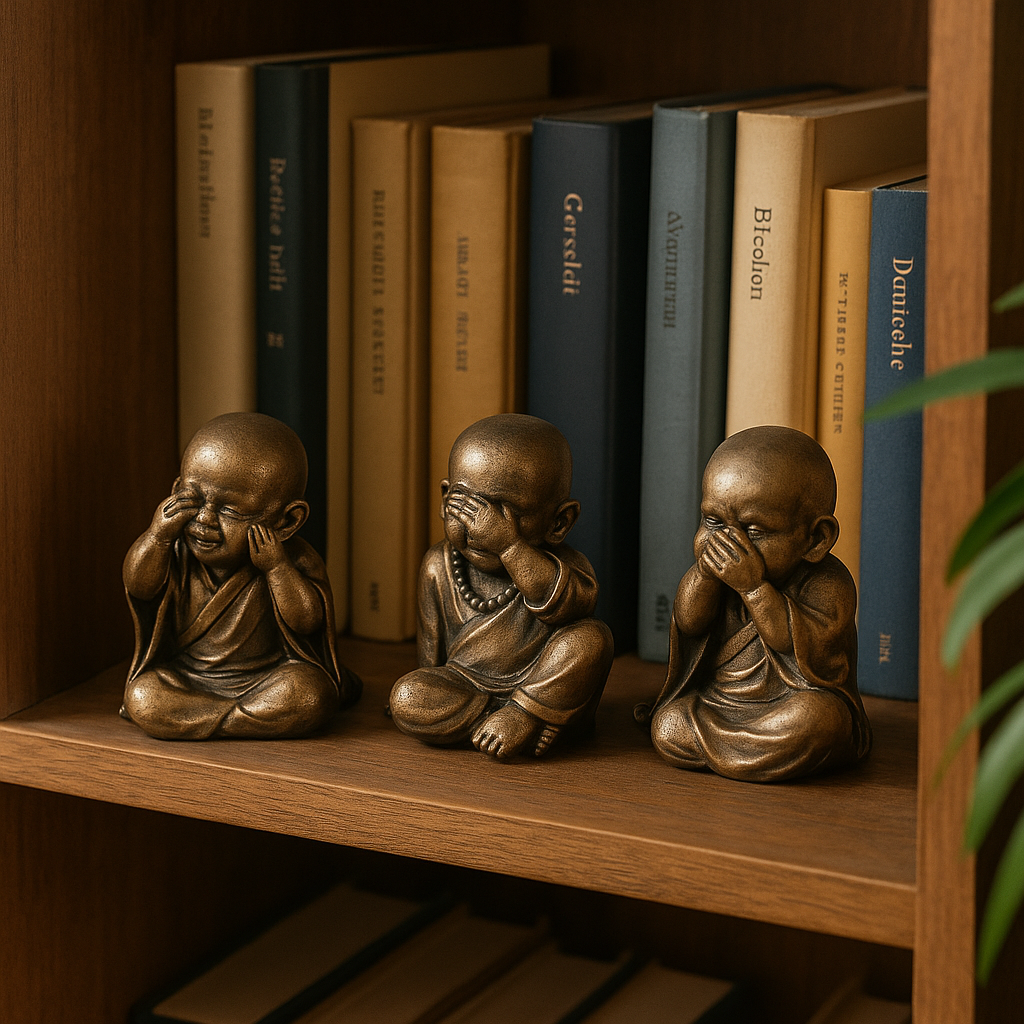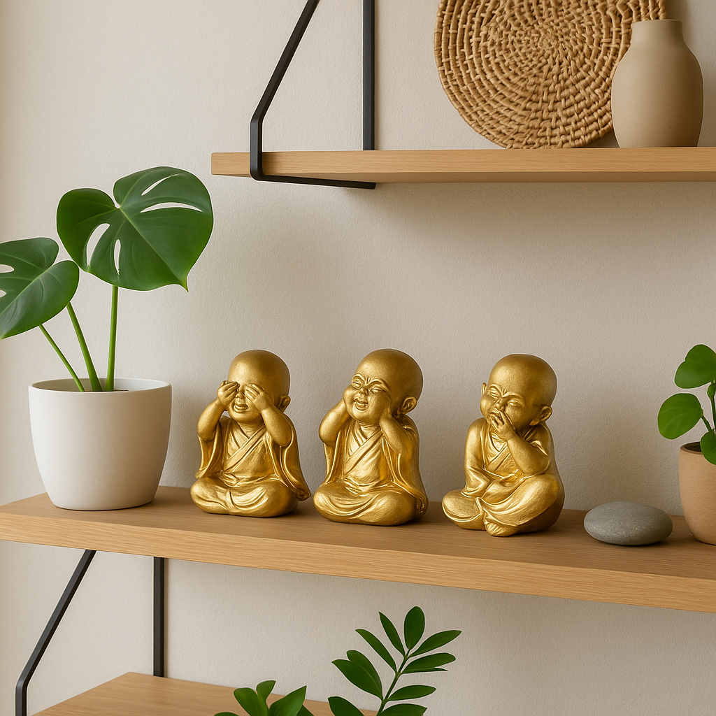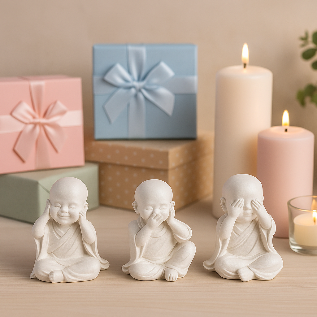 Ev dekorasyonunda, özellikle salonlarda, vitrinlerde veya raflarda kullanılabilecek bu set; dostluğu, masumiyeti ve yaşam felsefesini simgeleyen özel bir parçadır. Minimalist tasarımıyla modern dekorlara uyum sağlarken, aynı zamanda geleneksel bir anlam da taşır. Sevdiklerinize hediye olarak verebileceğiniz değerli bir ürün olmasının yanı sıra, koleksiyon meraklıları için de vazgeçilmezdir.