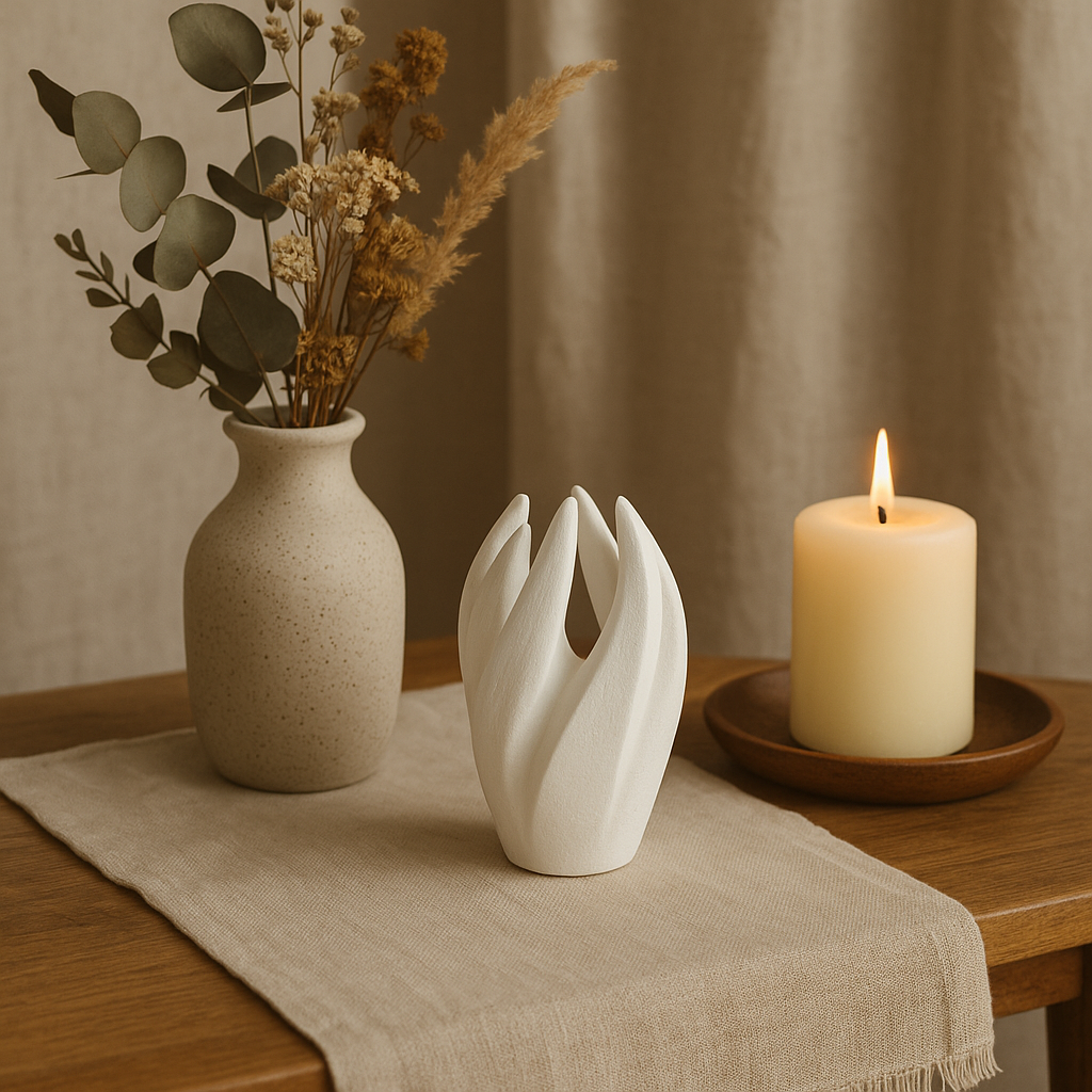 Modern tasarımıyla dikkat çeken yüzüklük, estetik kıvrımları sayesinde dekoratif şıklık sunarken aynı zamanda işlevsel bir kullanım sağlar. Takı ve yüzüklerin düzenli bir şekilde sergilenmesine yardımcı olan bu özel obje, hem pratik hem de görsel açıdan zengin bir detaydır. Minimalist formu sayesinde her mekâna kolayca uyum sağlar ve bulunduğu alana modern bir sanat eseri havası katar.